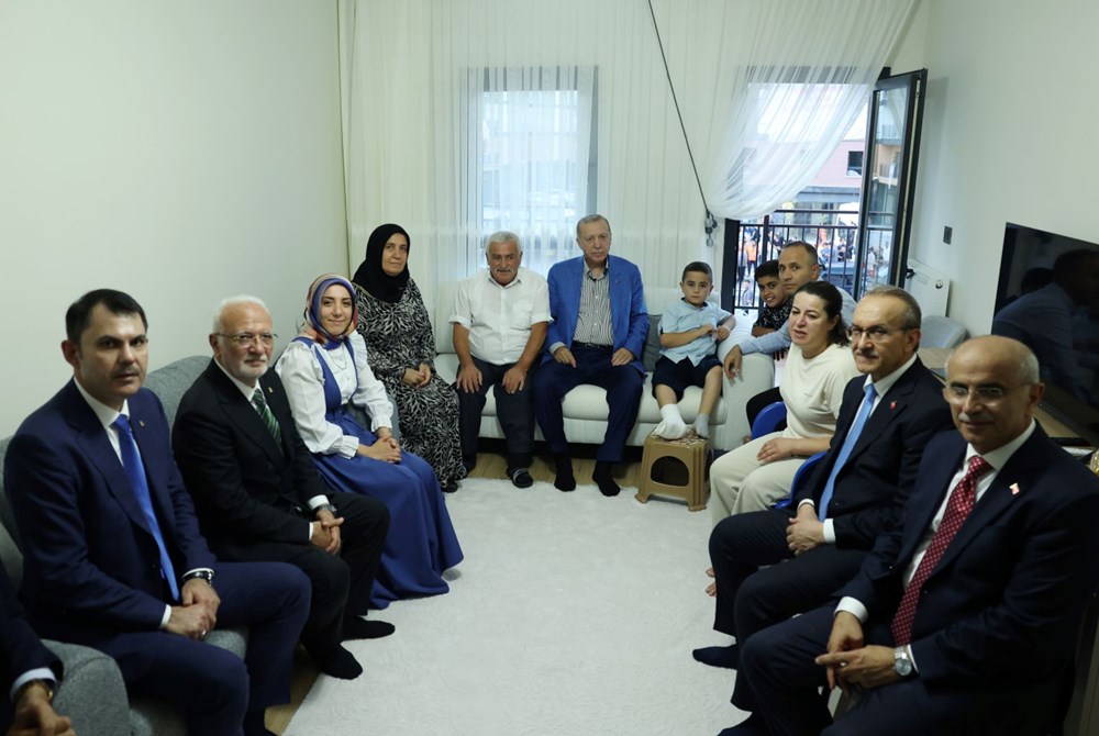 Ziyarette aileye geçmiş olsun dileklerini ileten Erdoğan, yeni konutlarının hayırlı olmasını diledi ve aileyle sohbet ederek taleplerini dinledi.