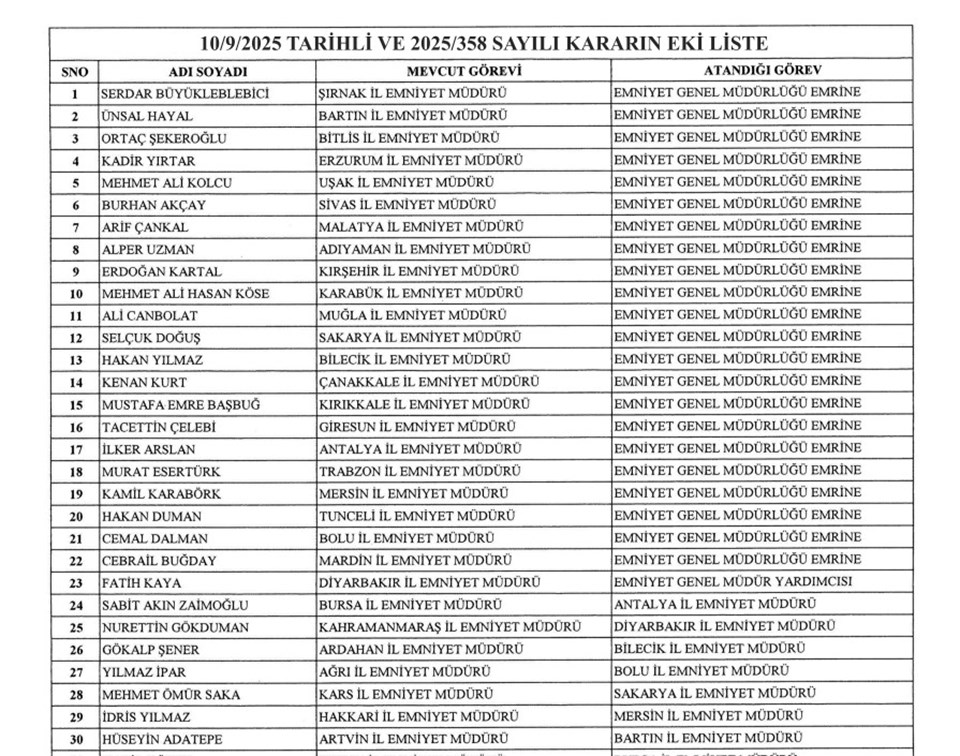 Emniyet’te yeni atamalar Resmi Gazete’de yayımlandı.