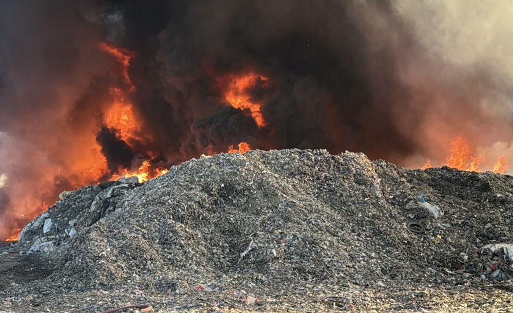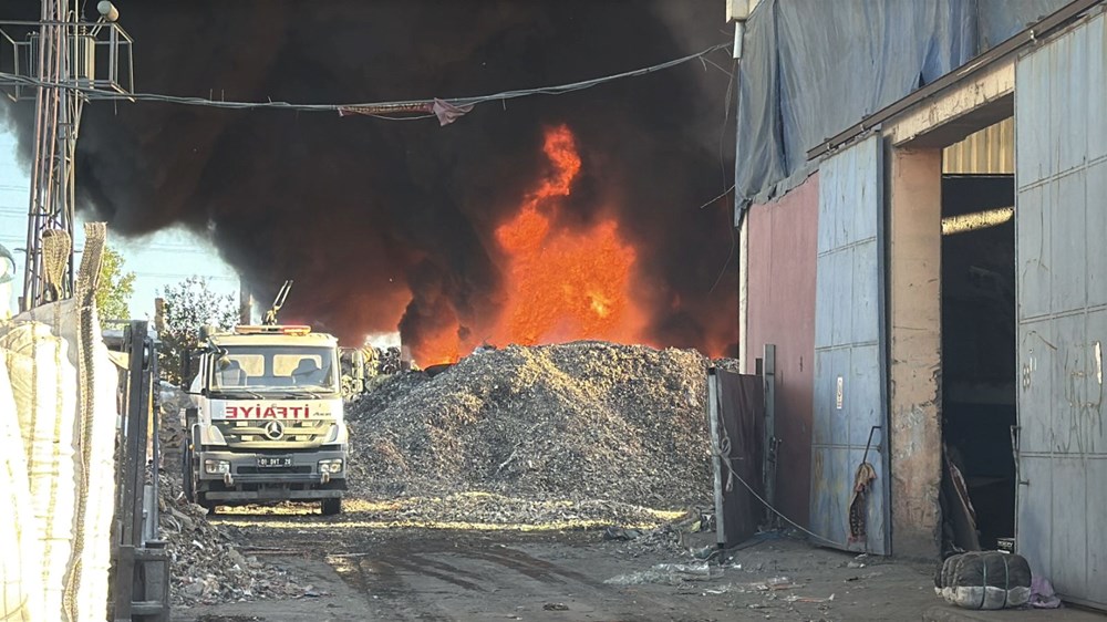 Adana’da bir geri dönüşüm fabrikasında yangın çıktı. Ekiplerin alevlere müdahalesi sürüyor.