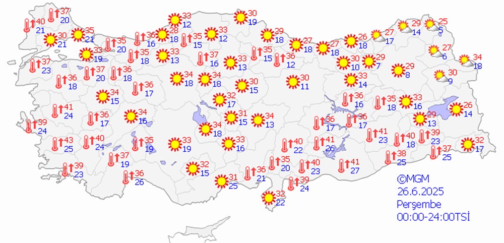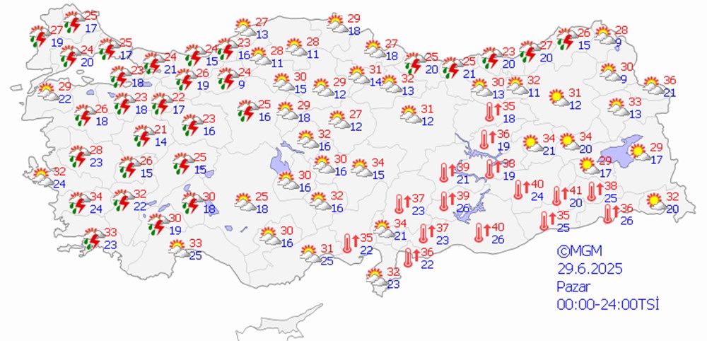 Pazar günü ise aşırı sıcaklıklar batı bölgesinde ve Karadeniz’in bir bölümünde yerini sağanak yağmura bırakacak.