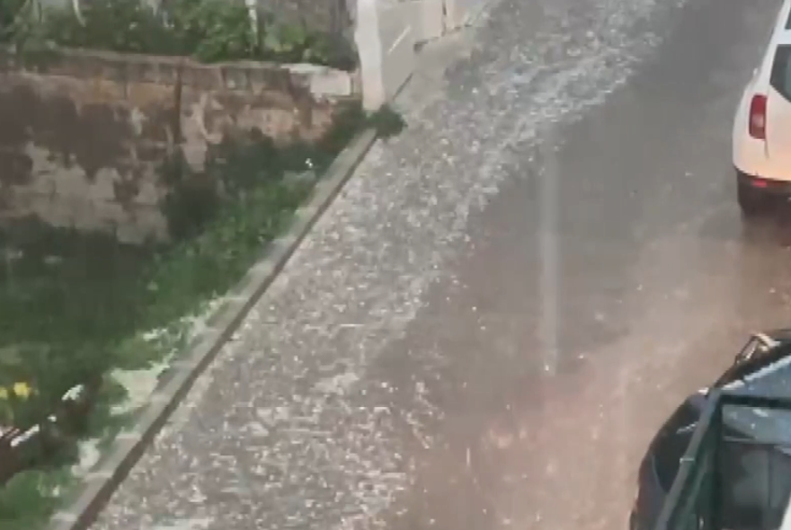 Kuşadası’nda akşam saatlerinde etkisini gösteren sağanak ve dolu nedeniyle cadde ve sokaklarda su birikti. Trafiğin aksadığı noktalarda bazı araçlar da suyun içinde kaldı.