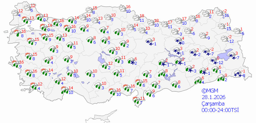 Bugün hava sıcaklıklarının İstanbul 13, Ankara 10, İzmir 17, Bursa 15 ve Antalya’da 14 derece olması bekleniyor.