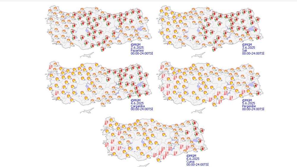 Kurban Bayramı arefesinde ise sıcaklıklar zirveyi görecek. MGM’nin 2-8 Haziran haftası tahminleri şöyle: