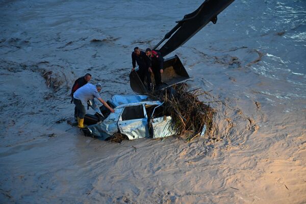 Bülbül Deresi’nin taşması sonucu sürüklenen 8 aracın hepsine ulaşıldı. Bölgede çalışmalarını sürdüren AFAD ekipleri, son aracı Savrun Çayı’nda buldu. Otomobil, itfaiye ekiplerince kepçe yardımıyla sudan çıkarıldı.