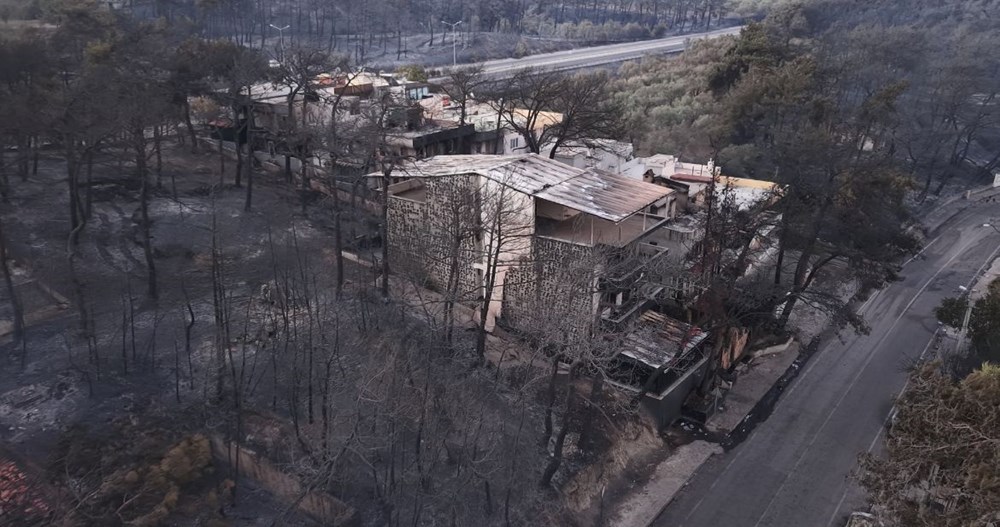 Havadan görüntülenen bölgede ortaya çıkan manzara felaketin boyutunu gözler önüne serdi.