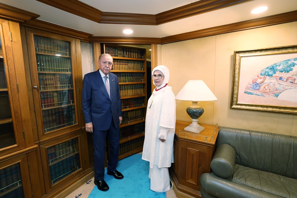 Erdoğan’a eşi Emine Erdoğan, kızı Sümeyye Erdoğan Bayraktar ve damadı Selçuk Bayraktar eşlik etti.