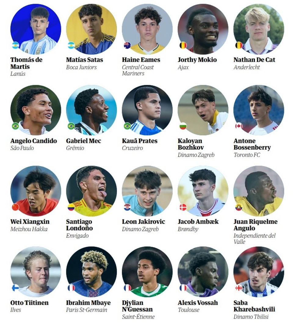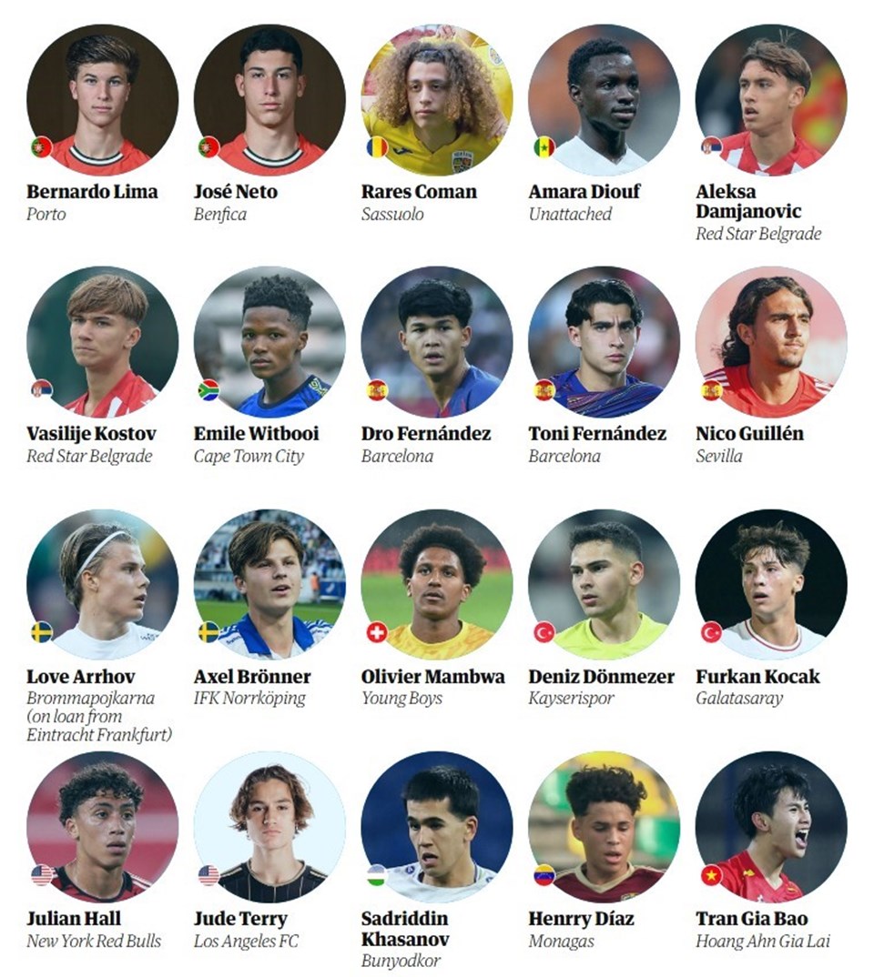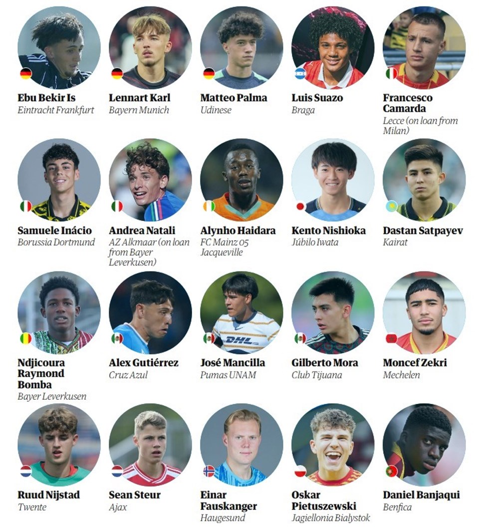 Listede PSG’den Ibrahim Mbaye, Bayern’den Lennart Karl, Dortmund’dan Samuele Inacio, Barcelona’dan Toni Fernandez ve Porto’dan Bernardo Lima gibi isimler yer aldı.
