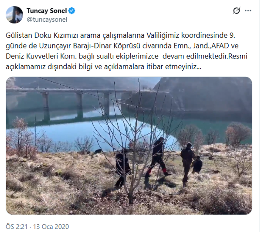 Sonel, o dönem arama çalışmalarına ilişkin sosyal medya hesabından bilgi veriyordu.