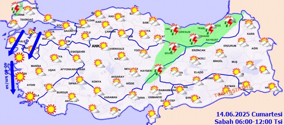 Son tahminlere göre; Kuzey, iç ve doğu kesimler parçalı yer yer çok bulutlu, Trakya’nın batısı, Toroslar mevkii, İç Anadolu’nun güney ve doğusu, Doğu Karadeniz, Doğu Anadolu’nun kuzey ve batısı ile Ordu çevrelerinde yerel sağanak ve gök gürültülü sağanak yağış görülecek. Diğer yerler ise parçalı ve az bulutlu olacak.