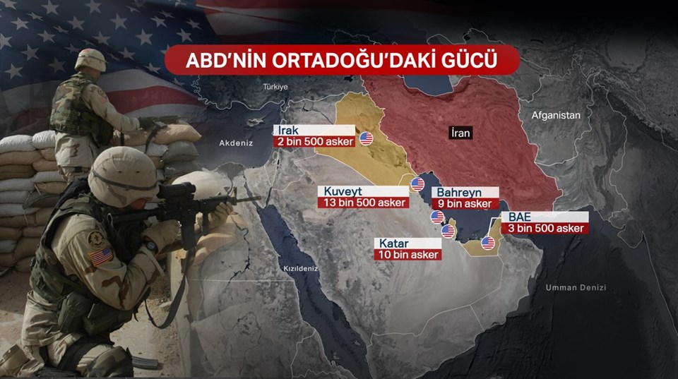 ABD’nin bölgede büyük kalıcı üsler ve daha küçük ileri konuşlanma yerleri dahil 20’ye yakın noktada 40 bin ila 50 bin asker bulunuyor. Bu üslerin çoğu İran’ın balistik füzelerinin menzili içinde yer alıyor.