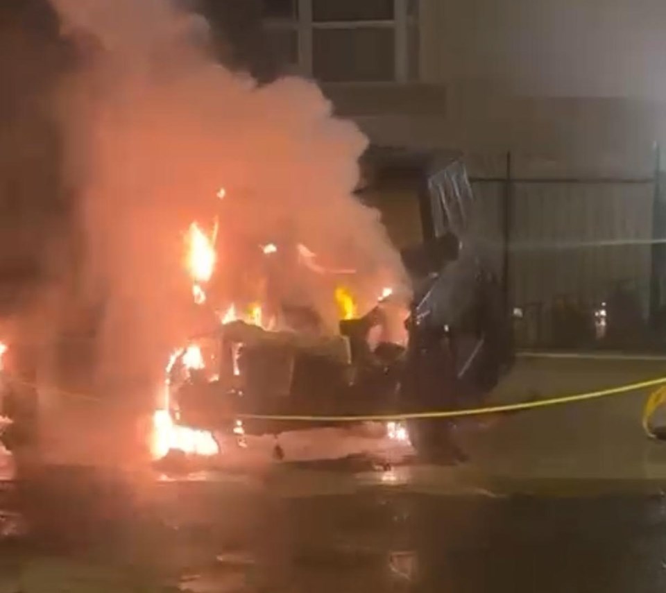 Sarıyer Emirgan Mahallesi’ndeki bir sitede park halindeki, iş insanı Karin O.’ya (54) ait cip ve iş insanı Gürkan T.’ye (64) ait cipin alev alev yandığını görenler, durumu 112 Acil Çağrı Merkezi’ne bildirdi.