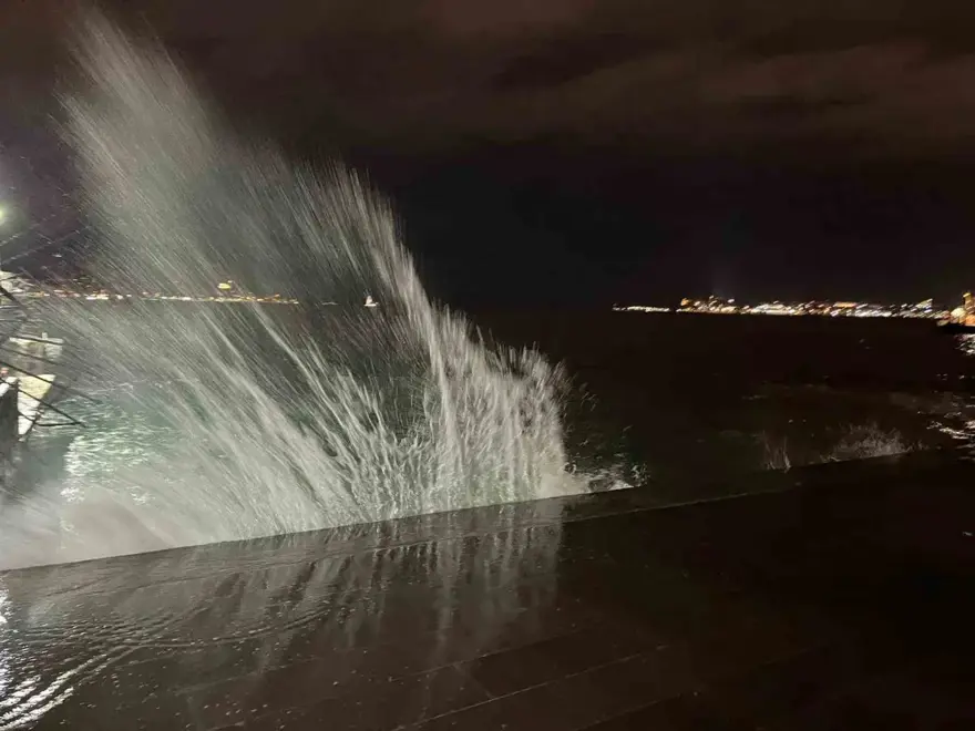 İstanbul’da lodos gece saatlerinde etkisini artırdı. Sahil şeridi boyunca yüksek dalgalar oluştu.