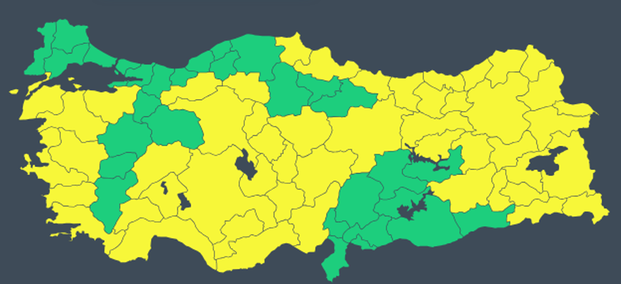 51 KENT İÇİN SARI KODLU UYARI