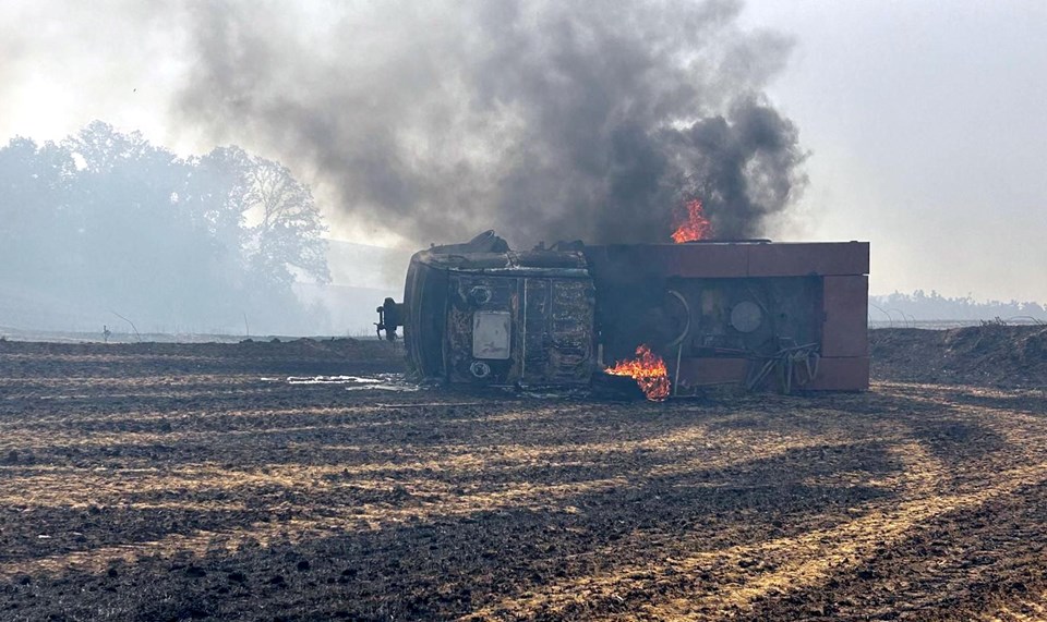 Yangın kısmen kontrol altına alınırken, söndürme çalışmalarına katılan Keşan İşletme Müdürlüğü’ne ait bir arazöz, arazide toprağa saplanıp devrildi. Araçta bulunan 4 personel hafif şekilde yaralandı. Yaralılar, Keşan Devlet Hastanesi’ne kaldırılarak tedavi altına alındı. Saplandığı yerden çıkarılamayan arazöz alevlerin arasında kalıp yanarak kullanılamaz hale geldi.