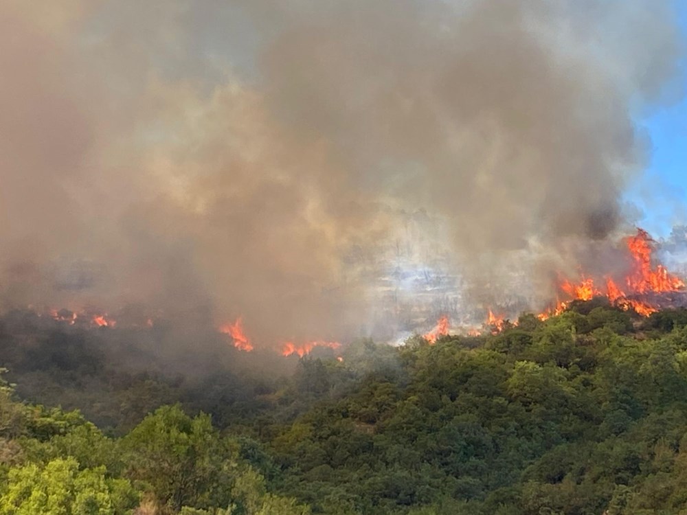 Ekiplerin havadan ve karadan müdahalesi sürüyor. Söndürme çalışmalarına vatandaşlar da destek veriyor.