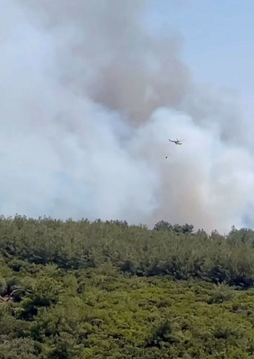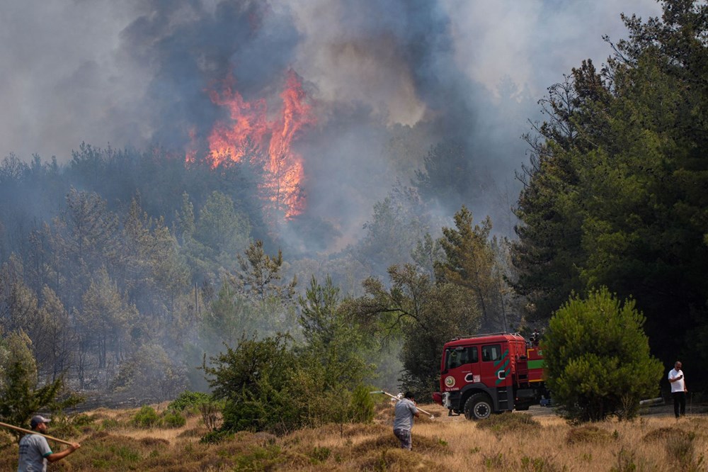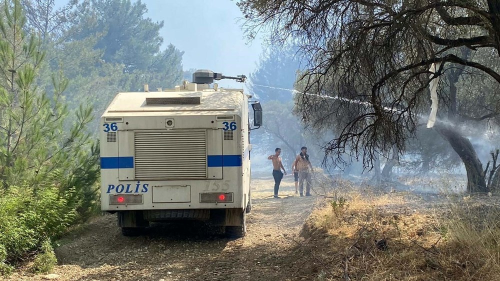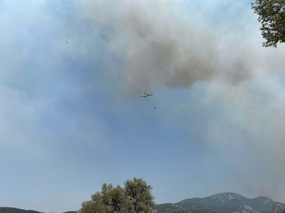İhbar üzerine bölgeye, İzmir Orman Bölge Müdürlüğü’ne bağlı 4 uçak, 7 helikopter, 25 arazöz, 7 su ikmal aracı ve 4 dozer sevk edildi.