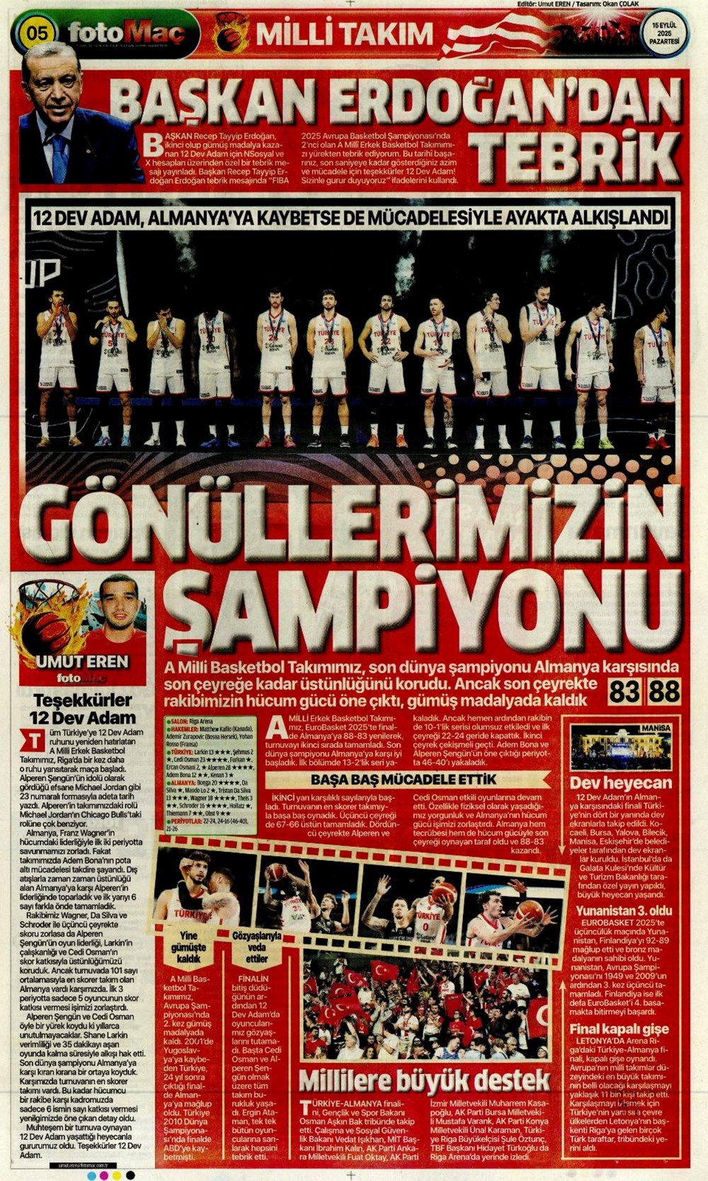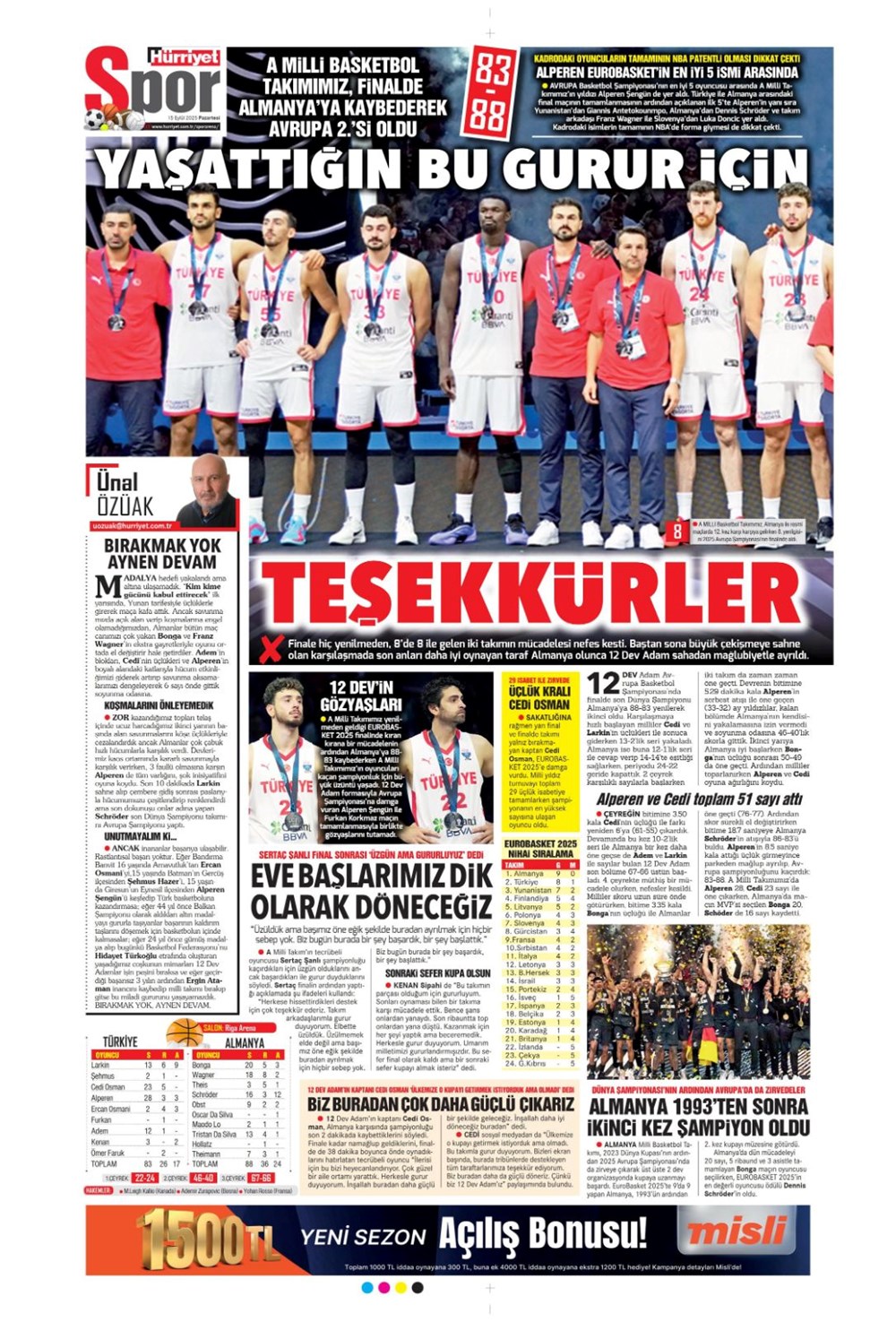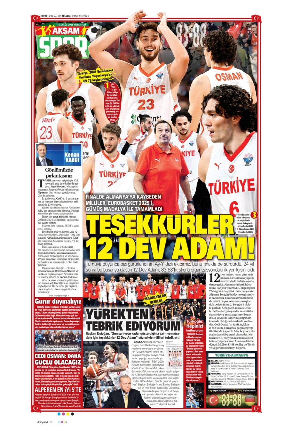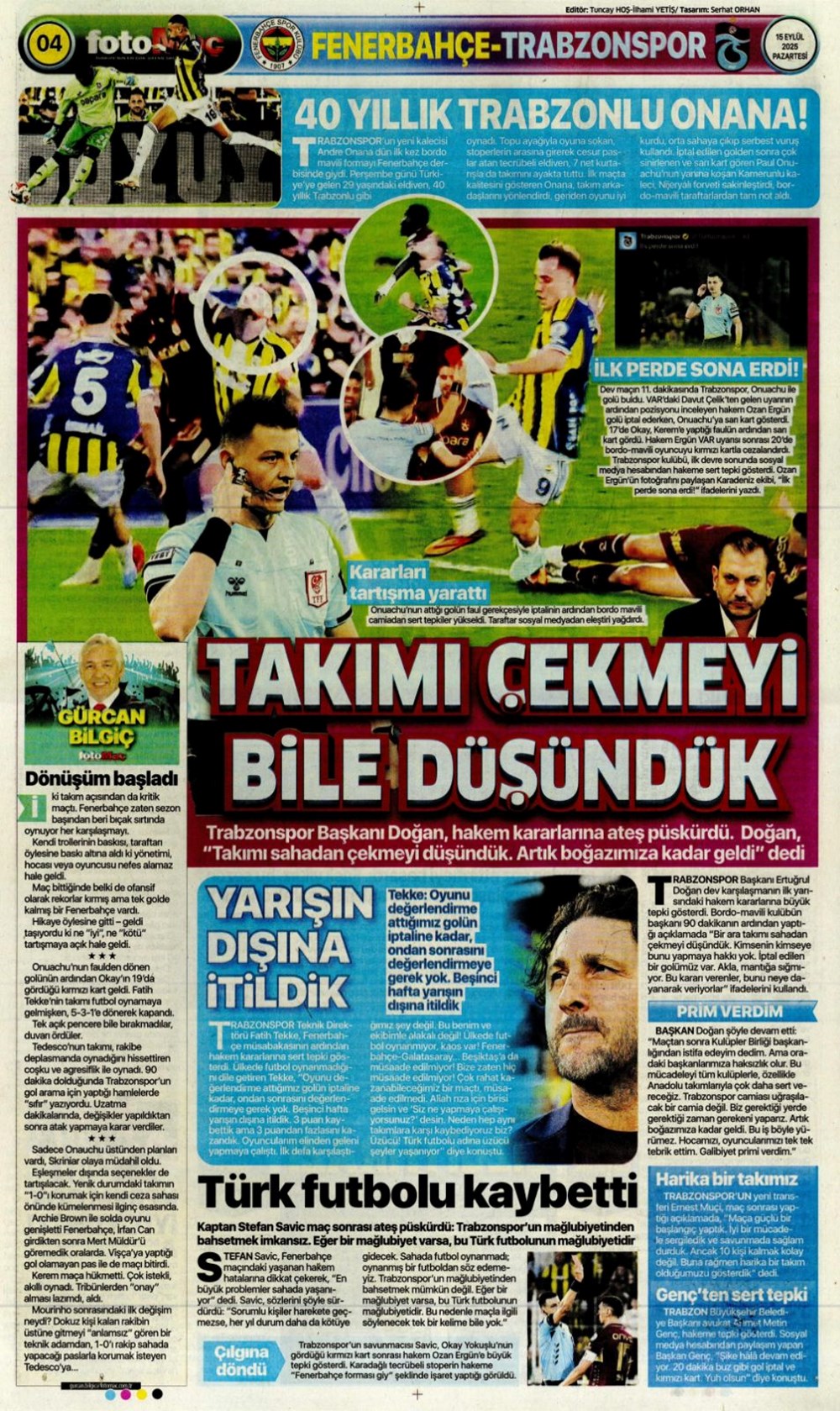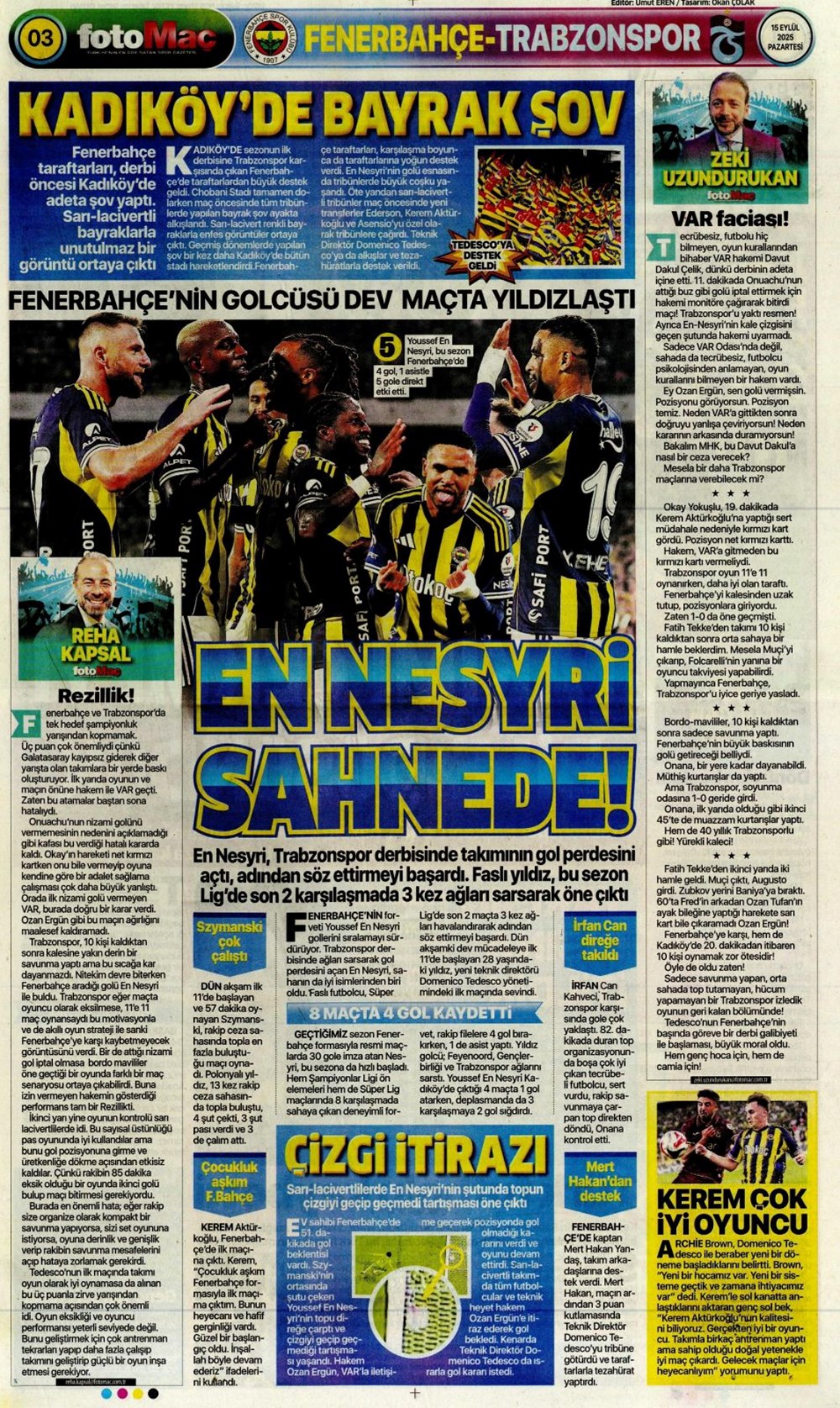 “Kadıköy’de hoşgeldin partisi” (15 Eylül spor manşetleri)
