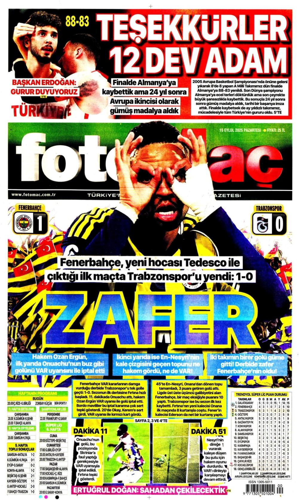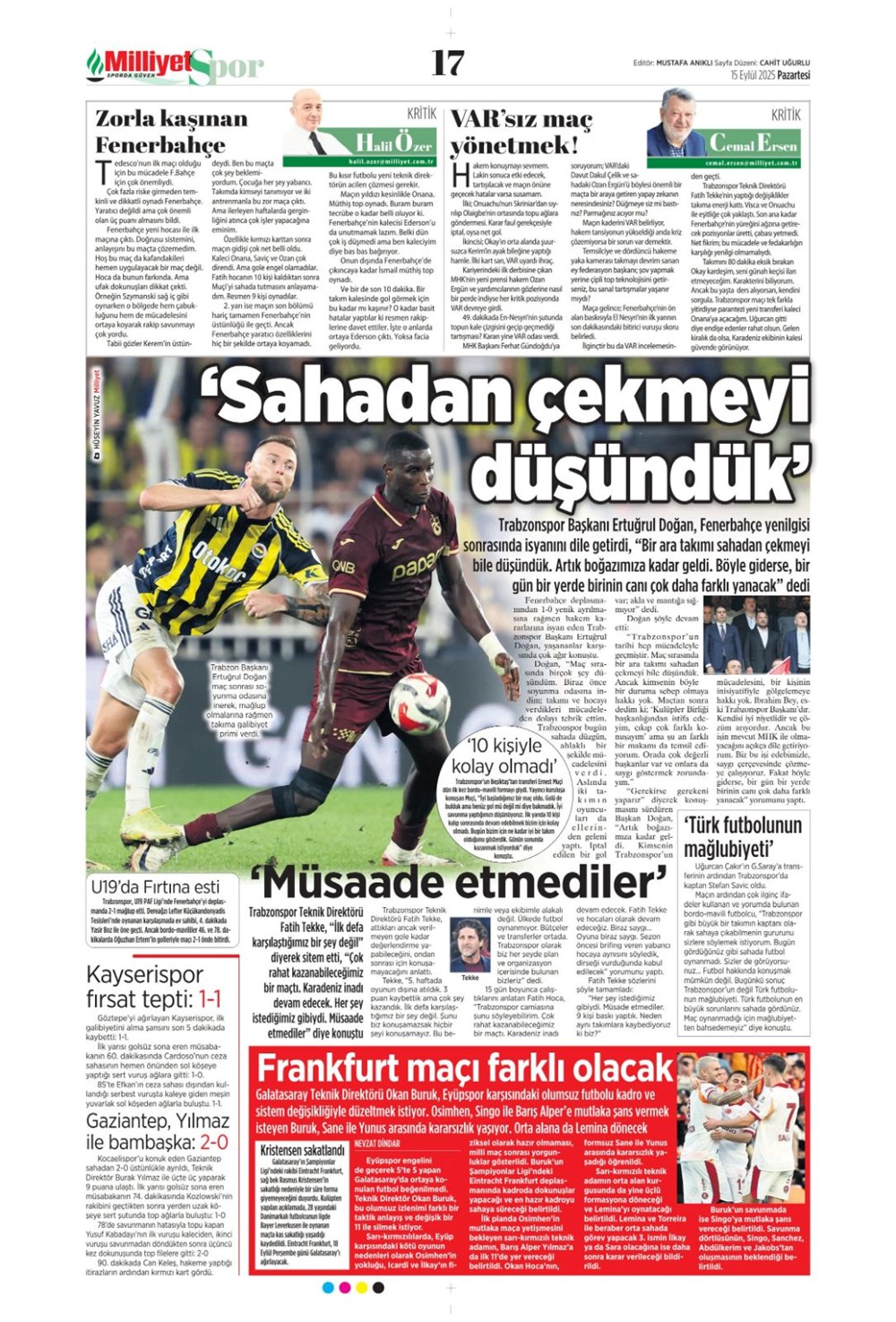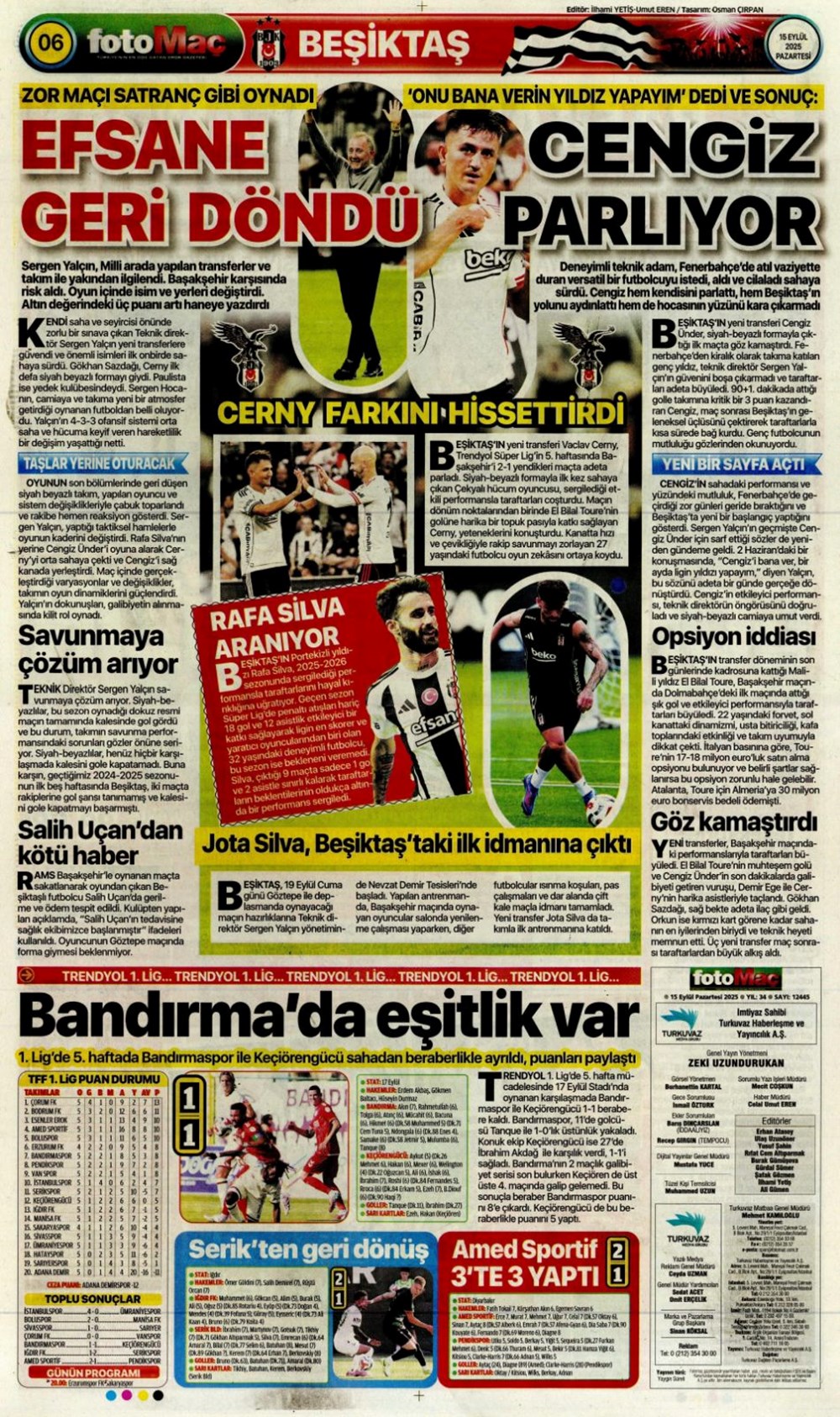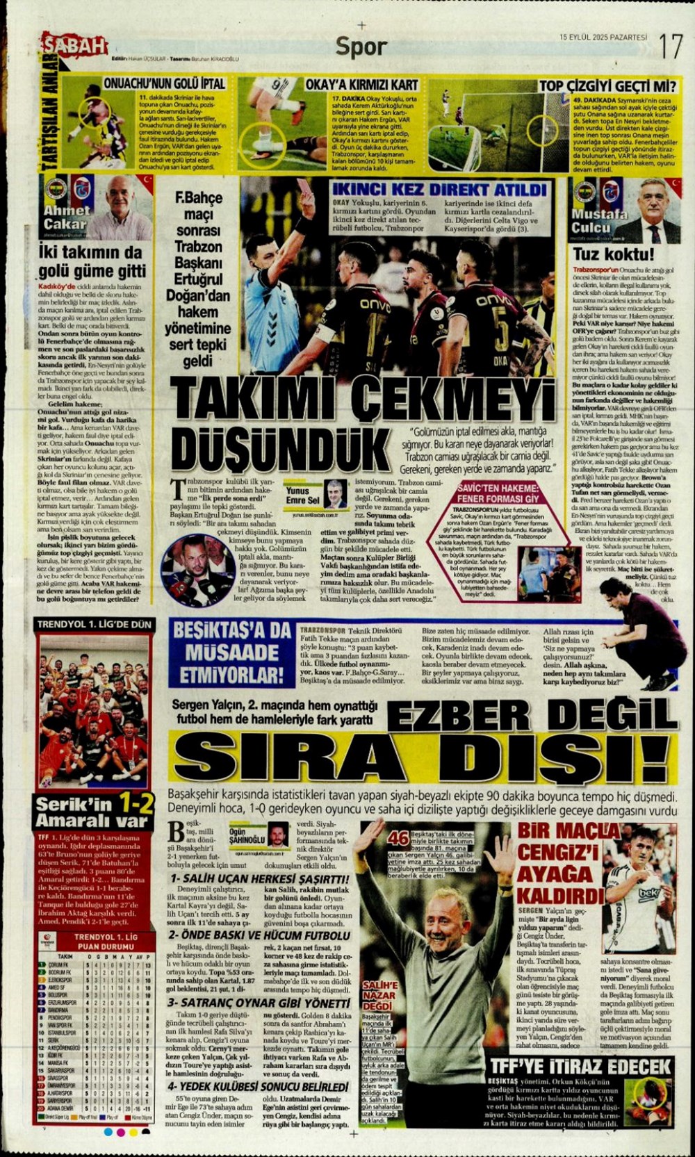 Günün spor manşetlerinde, spor gündeminden en yeni gelişmeler ve transfer haberleri yer aldı. 15 Eylül 2025 tarihli gazetelerin spor sayfalarında Beşiktaş, Fenerbahçe, Galatasaray ve Trabzonspor haberlerine, 1 dakikada göz atın.