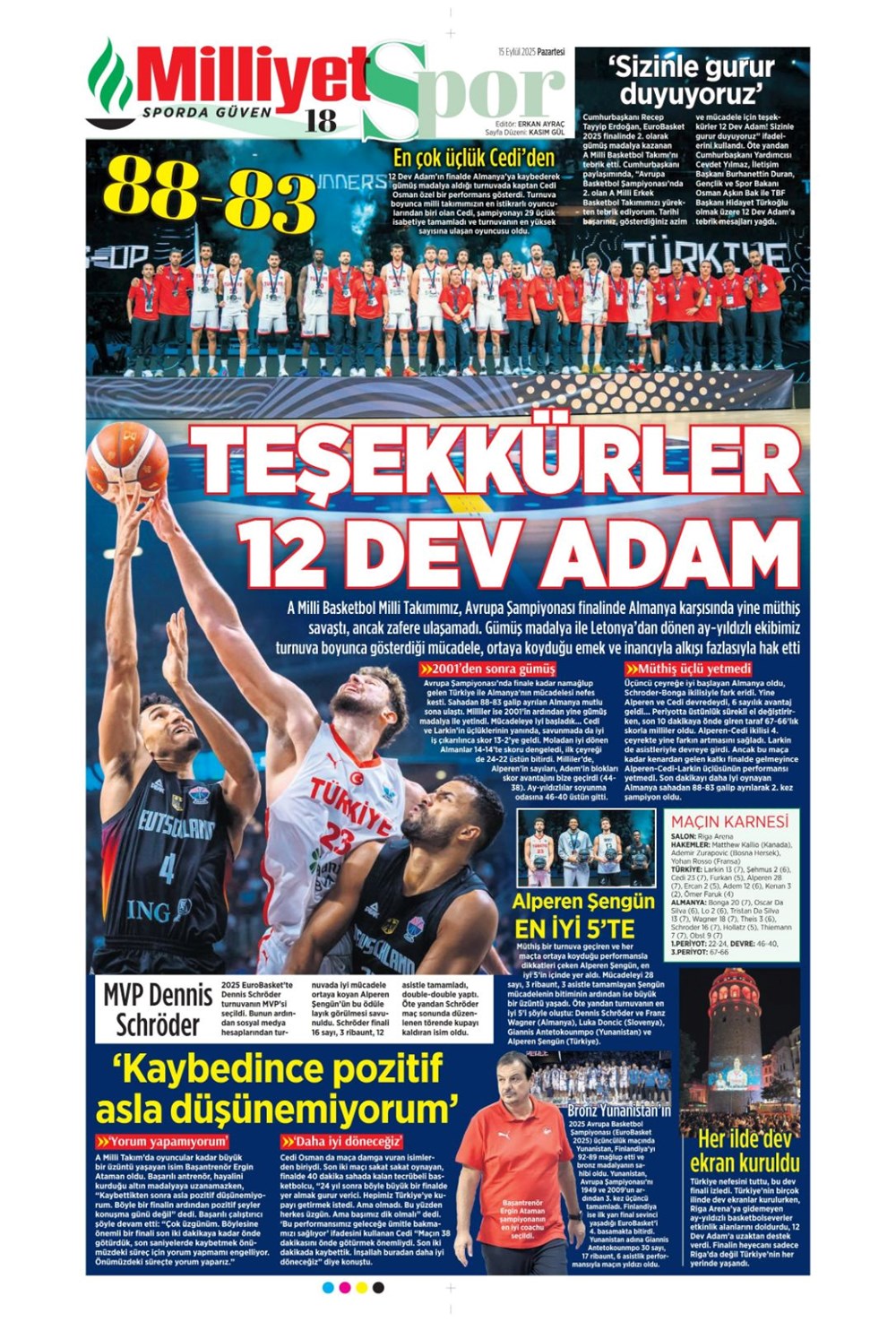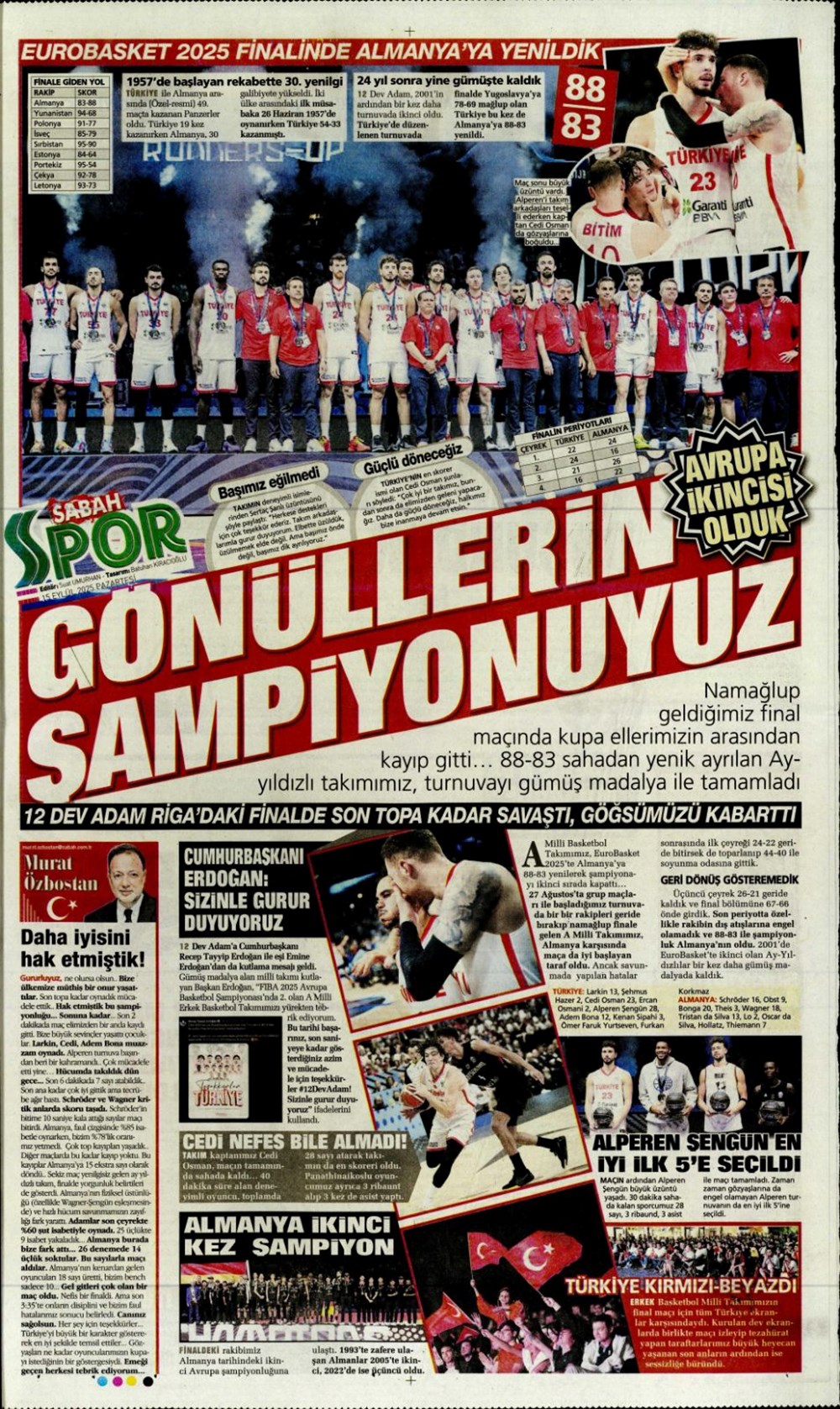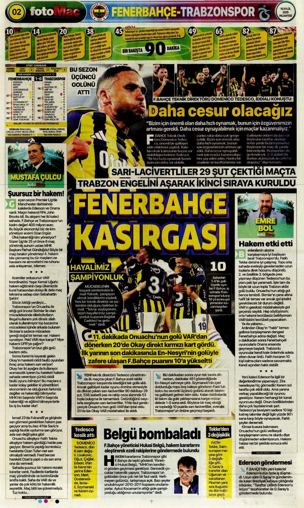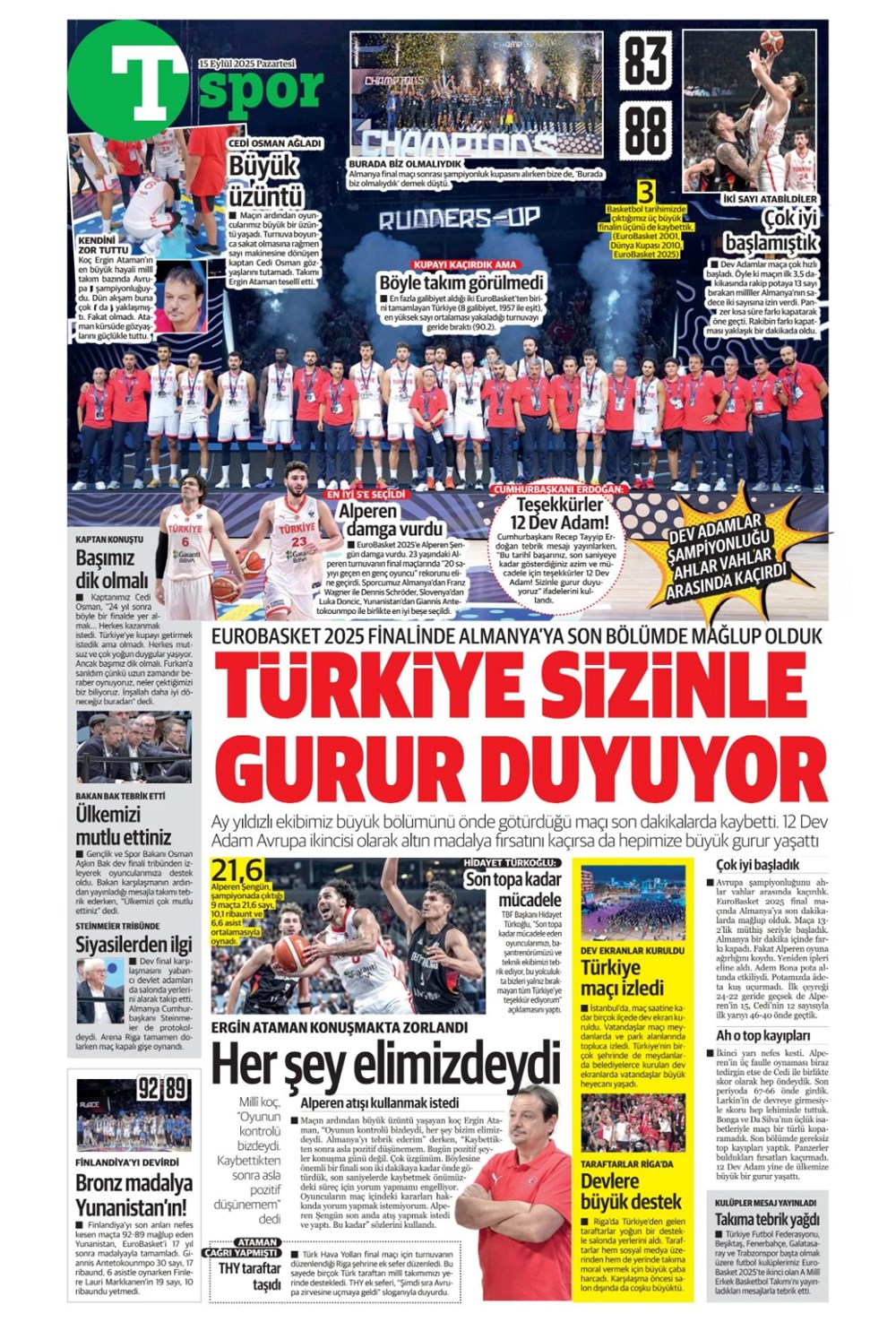 Günün spor manşetlerinde, spor gündeminden en yeni gelişmeler ve transfer haberleri yer aldı. 15 Eylül 2025 tarihli gazetelerin spor sayfalarında Beşiktaş, Fenerbahçe, Galatasaray ve Trabzonspor haberlerine, 1 dakikada göz atın.