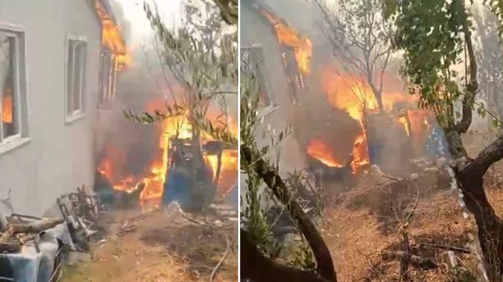 Akçat köyünden gelen görüntülerde bir evin alevlere teslim olduğu görüldü.