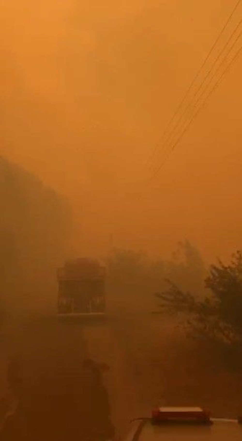 Yangın bölgesinden gelen görüntülerde, yoğun duman nedeniyle görüş mesafesinin oldukça düştüğü görülüyor.
