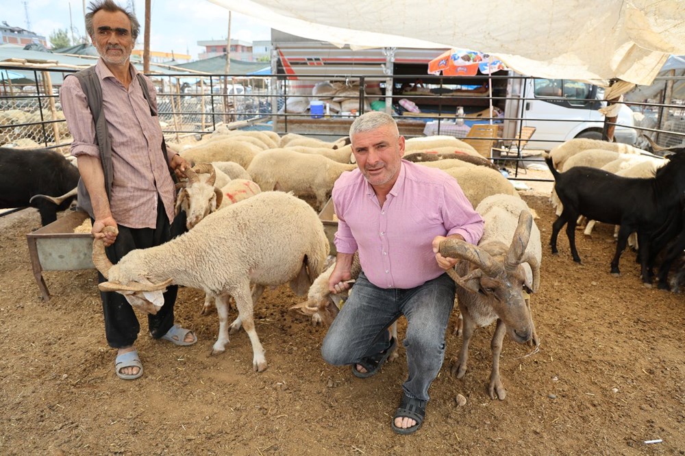 Kentte uzun yıllardır küçükbaş hayvan yetiştiriciliği yapan Ercan Şimşek, pazara getirdiği 4 boynuzu 4 koçu 20 ila 25 bin lira arasında değişen fiyatlarla satışa çıkarttı.