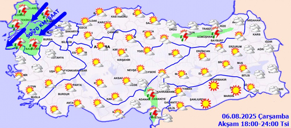 Rüzgarın, Marmara ile Kuzey Ege kıyılarında kuzey ve kuzeydoğu yönlerden kuvvetli ve kısa süreli fırtına (40-70 km/saat) şeklinde esmesi beklendiğinden yaşanabilecek olumsuzluklara karşı dikkatli ve tedbirli olunması gerekmektedir.