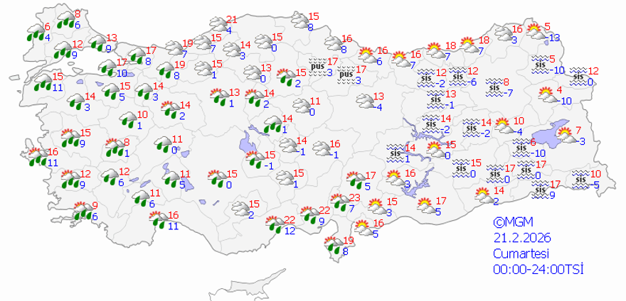 Meteoroloji Genel Müdürlüğü’nün (MGM) verilerine göre bugün sert lodosla birlikte kuzey, iç ve batı kesimlerde sıcaklıklar 3-5 derece yükseliyor. Hafta sonu ise kuvvetli yağışlar başlıyor.