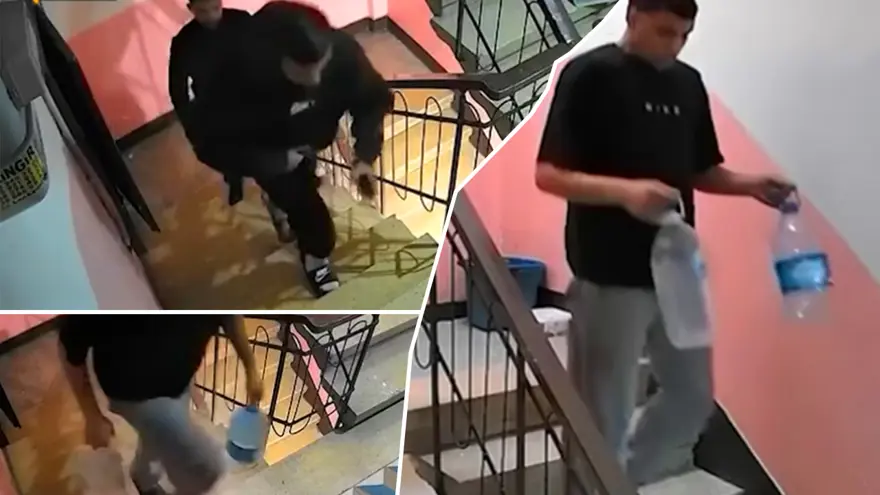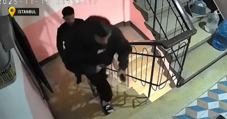 Olay, gelen seslerden şüphelenen apartman sakinlerinin güvenlik kamerasına bakmasıyla ortaya çıktı.