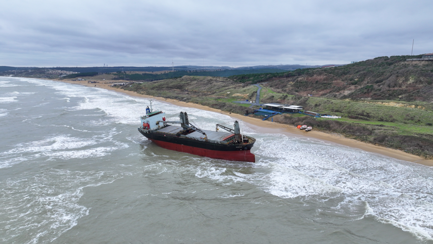Sarıyer açıklarında karaya oturan 100 metre uzunluğundaki Komor Adaları bayraklı kargo gemisinin, kurtarılma talebinde bulunmadan bekleyişi sürüyor.