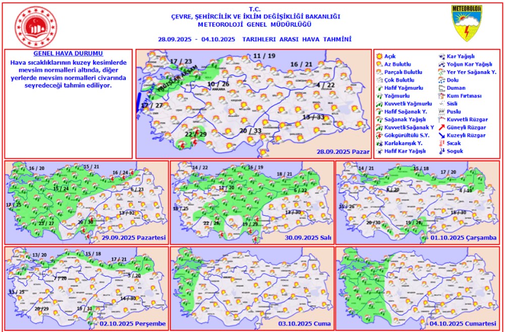 Hava sıcaklığı, yurdun kuzey kesimlerinde mevsim normallerinin 2-4 derece altında, diğer yerlerde mevsim normalleri civarında olması bekleniyor.