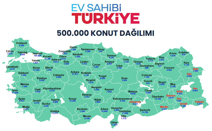 Konutların ilk teslimatının deprem bölgesinde 2026 yılı içerisinde diğer şehirlerde ise Mart 2027’de yapılması öngörülüyor.
