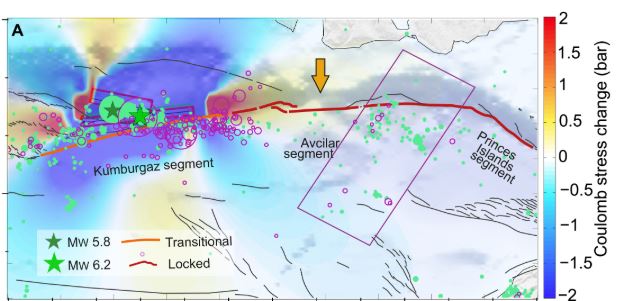 “Bu segment, gelecekte 6 büyüklüğünde bir depremi tetikleyecek kadar büyüktür ve bu da kilitli Prens Adaları segmenti üzerindeki statik gerilimi daha da artıracaktır. Prens Adaları segmentinin batı kenarı da sürekli olarak sismik olarak aktiftir.”