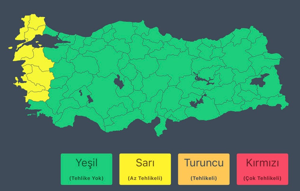 İçişleri Bakanlığı ise birçok kente “sarı” kodlu uyarıda bulundu.