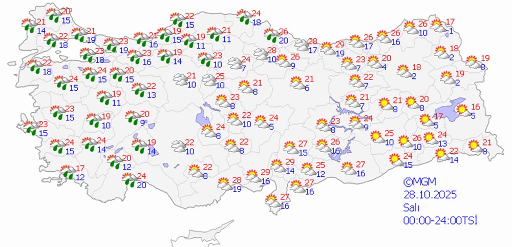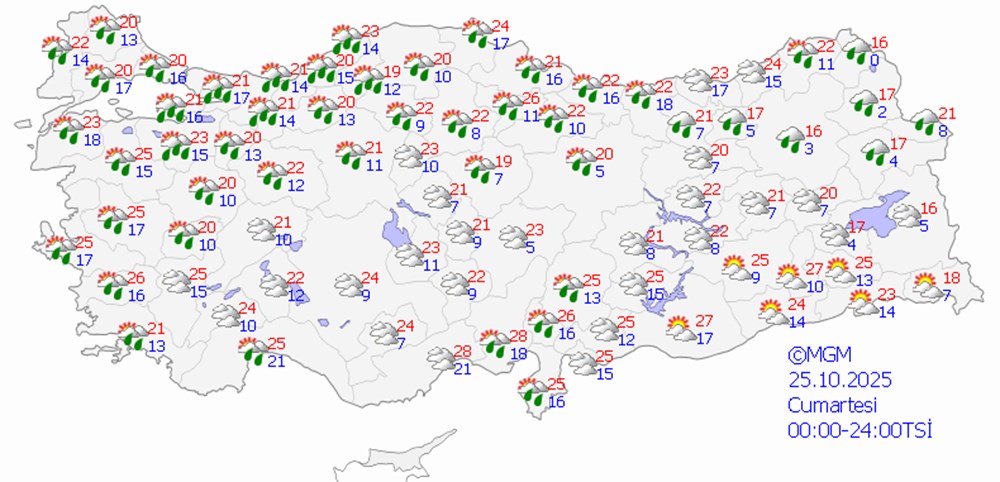 “Meteoroloji’den alınan son bilgilere göre; 23 Ekim 2025 Perşembe günü; Kıyı Ege’de halen devam eden sağanak ve gök gürültülü sağanak yağışların, gece saatlerine kadar Manisa ve Aydın’ın batı ilçelerinde yerel kuvvetli olması bekleniyor.